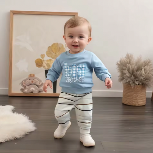 Blue Embroidered Big Brother Gingham Crewneck