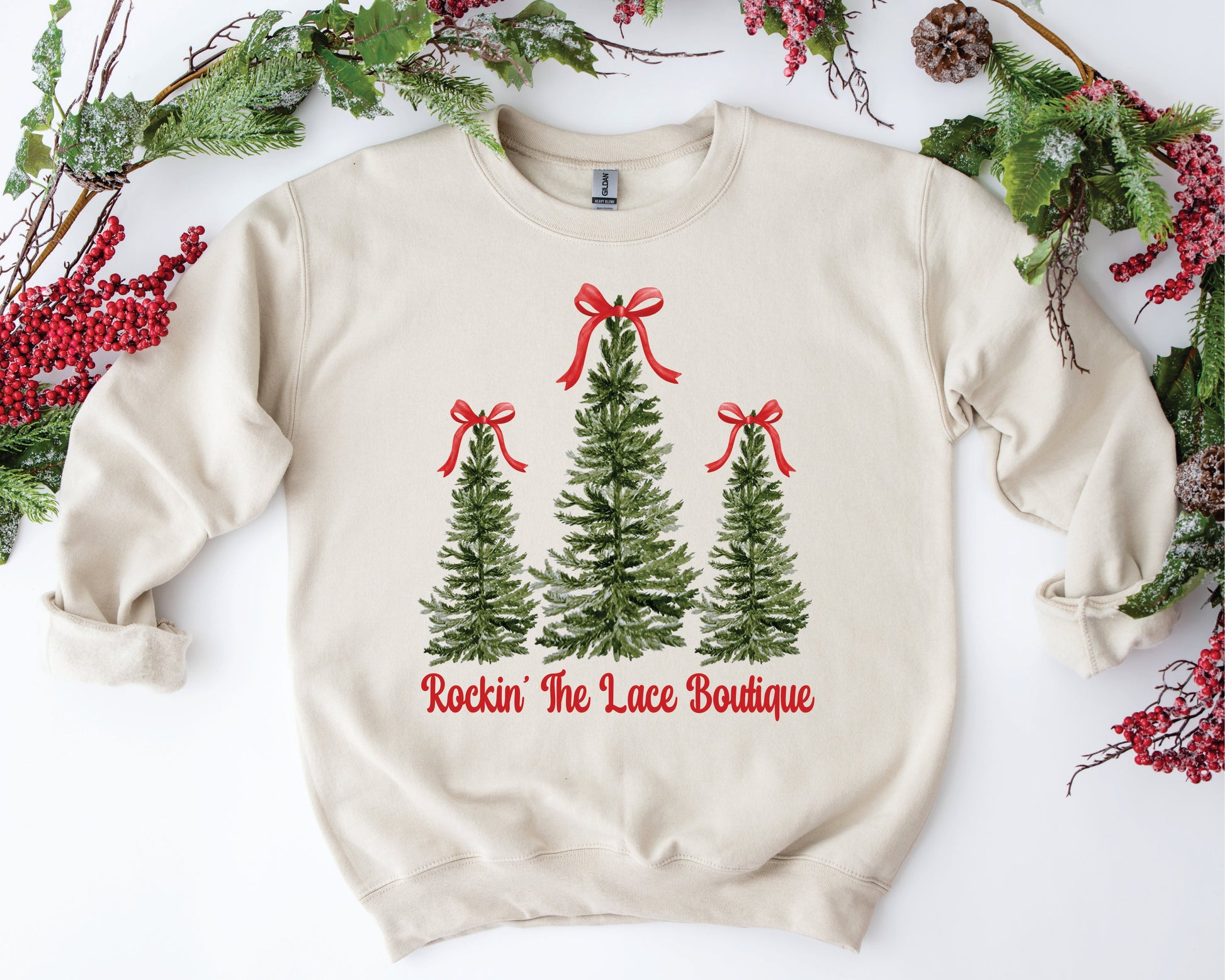 Custom Name Trees with Bow Sweatshirt - Tan