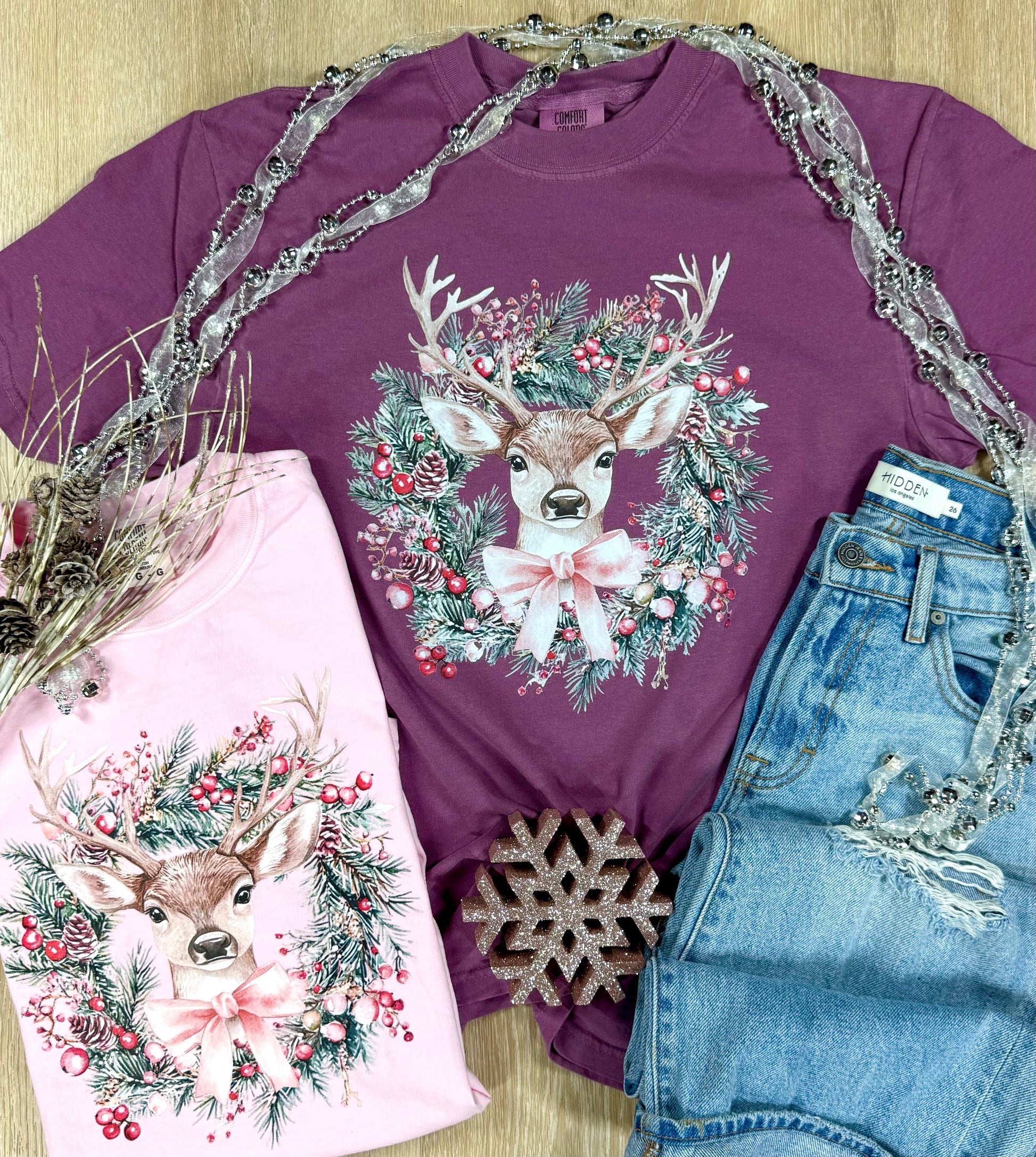 Deer Wreath Short or Long Sleeve Graphic Tees