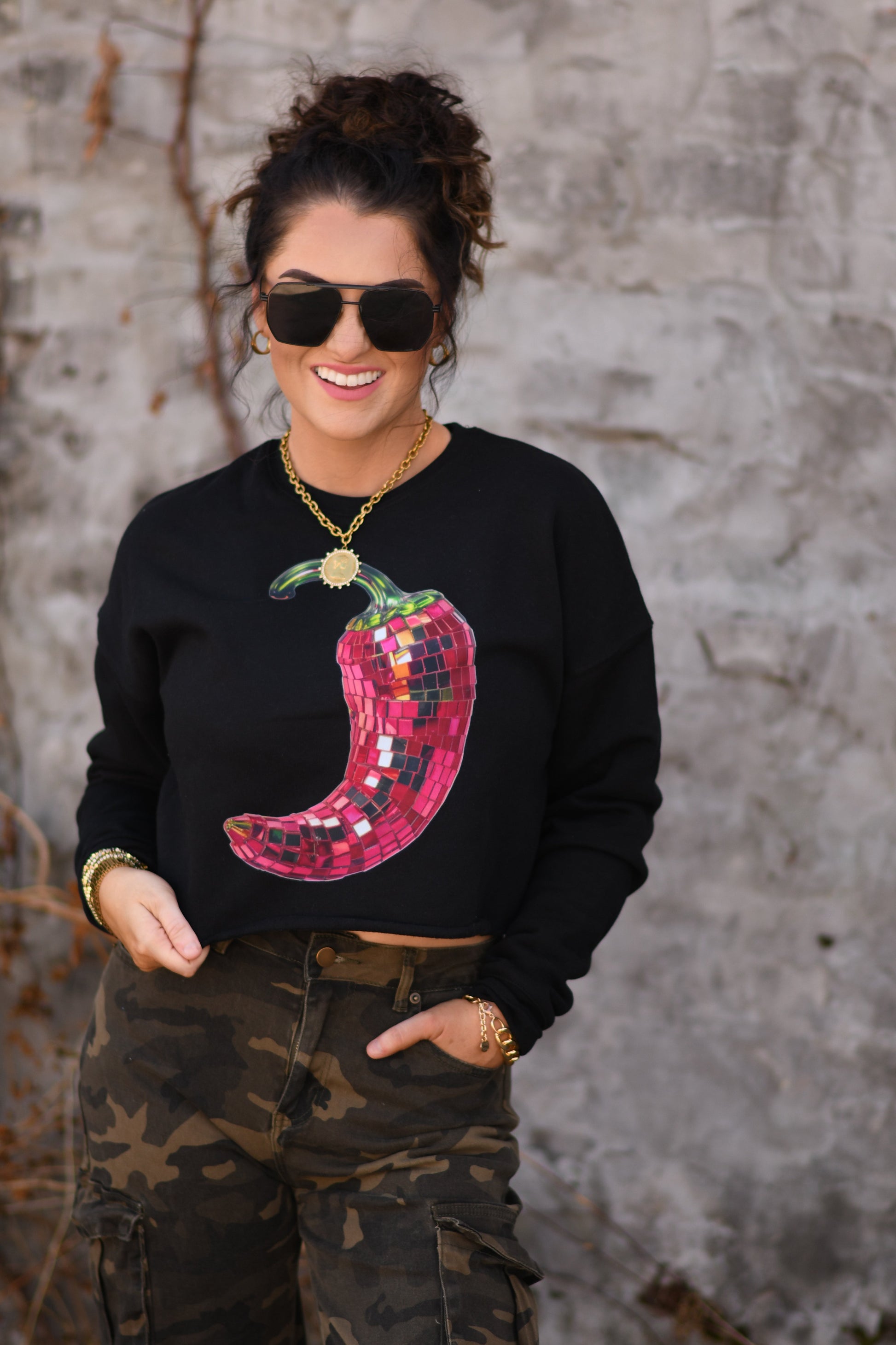 Disco Chili Pepper Cropped Sweatshirt