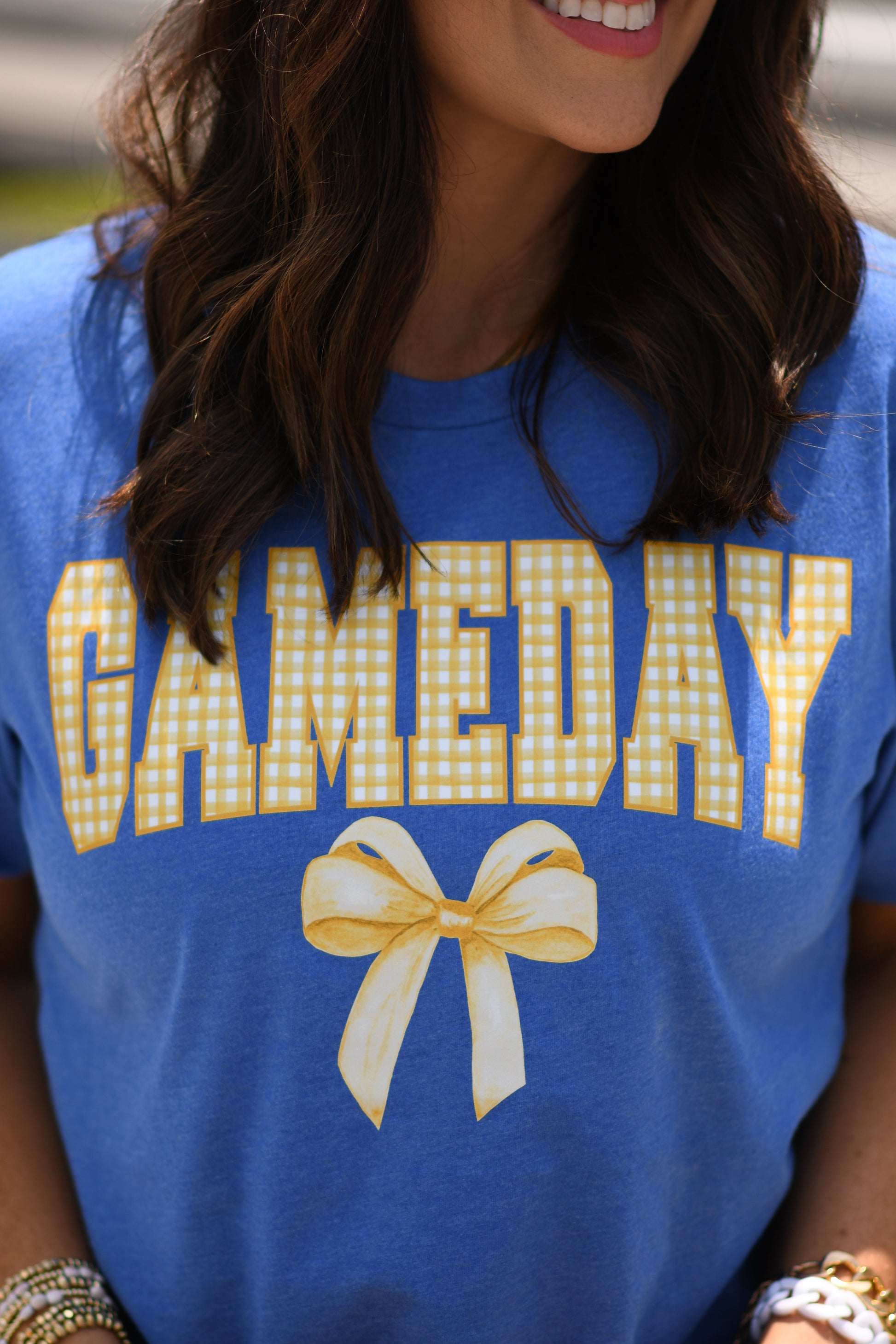 Game Day Gingham Bow Royal Tee