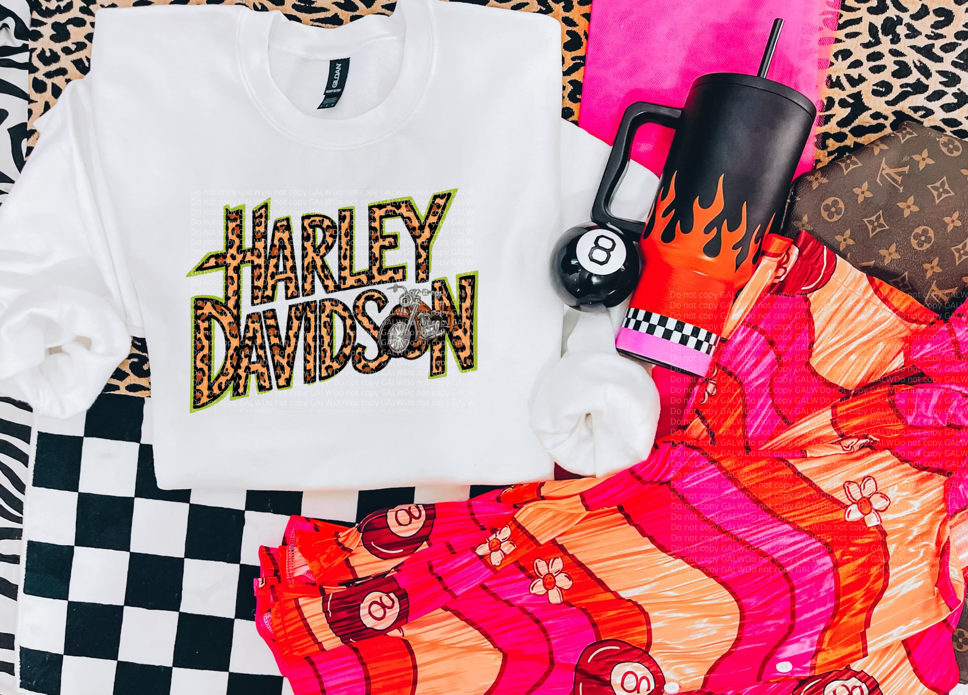 Leopard & lim green motor cycle tee or sweatshirt