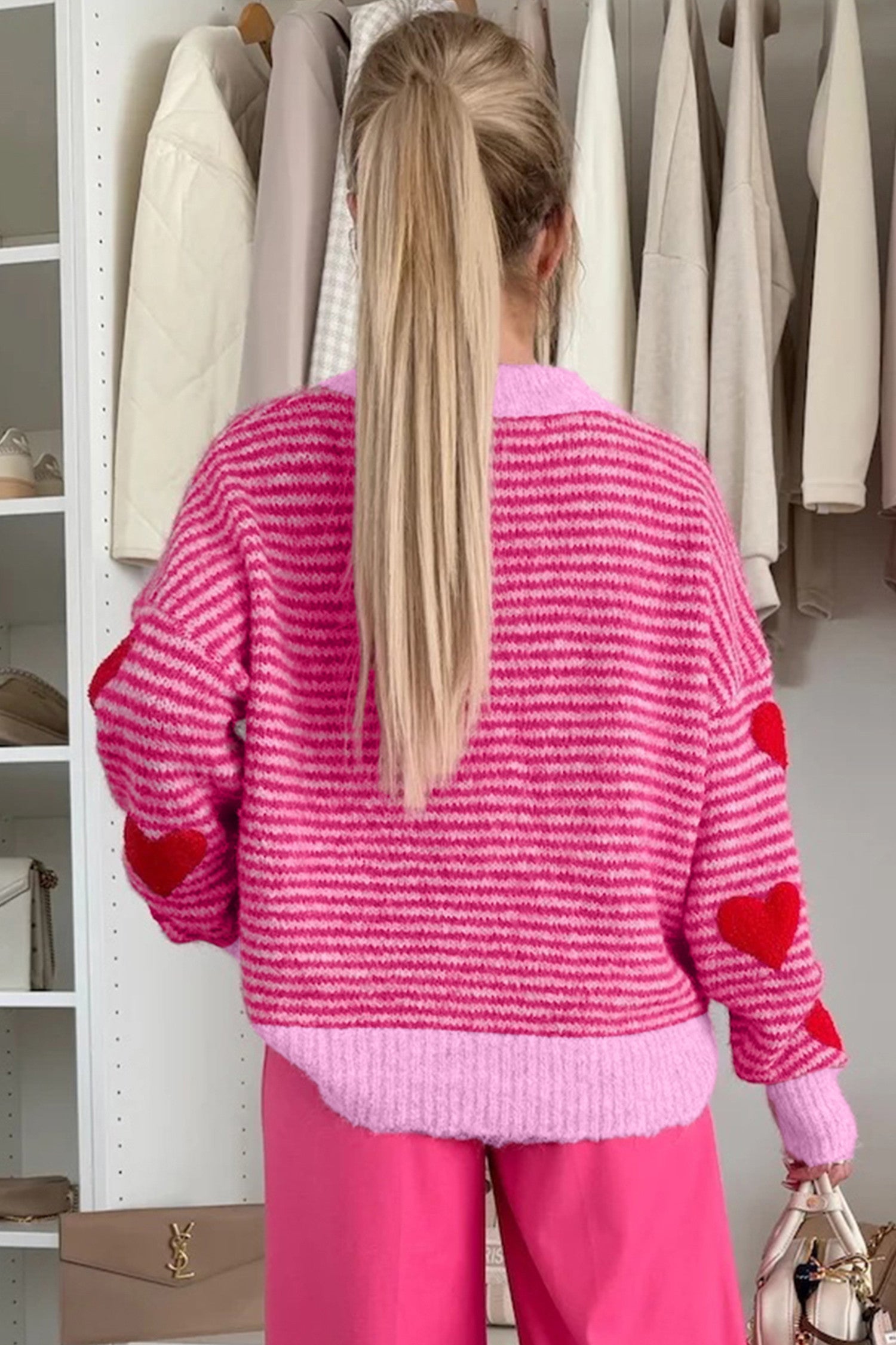 PRE ORDER Rose Stripe Contrast Heart Pattern Brushed Knit Sweater/ ETA 1/26