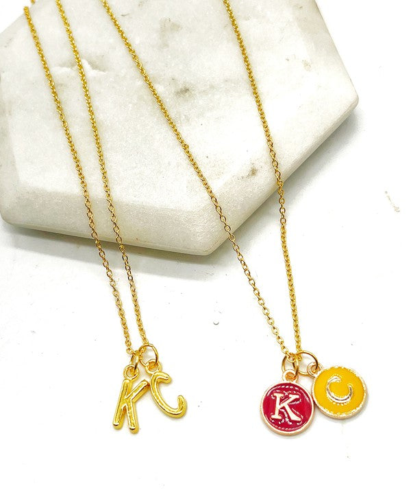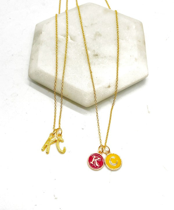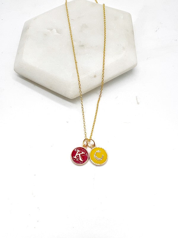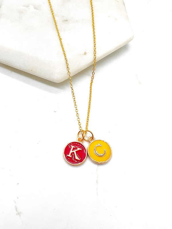 Red Yellow Gold KC Initial Necklace Chiefs