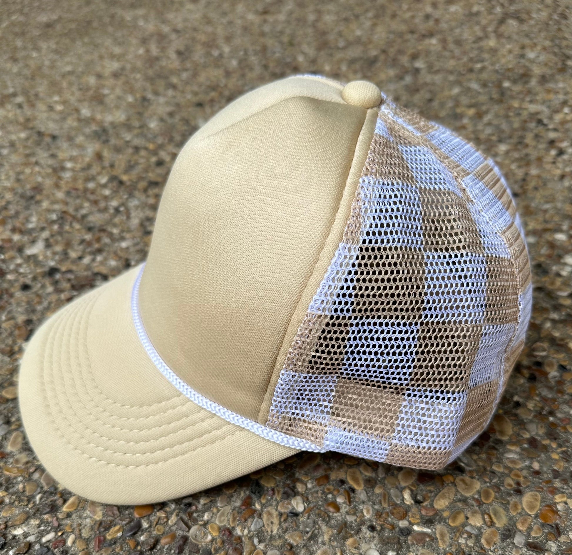 **SALE** RTS Tan Checkered Trucker Hat